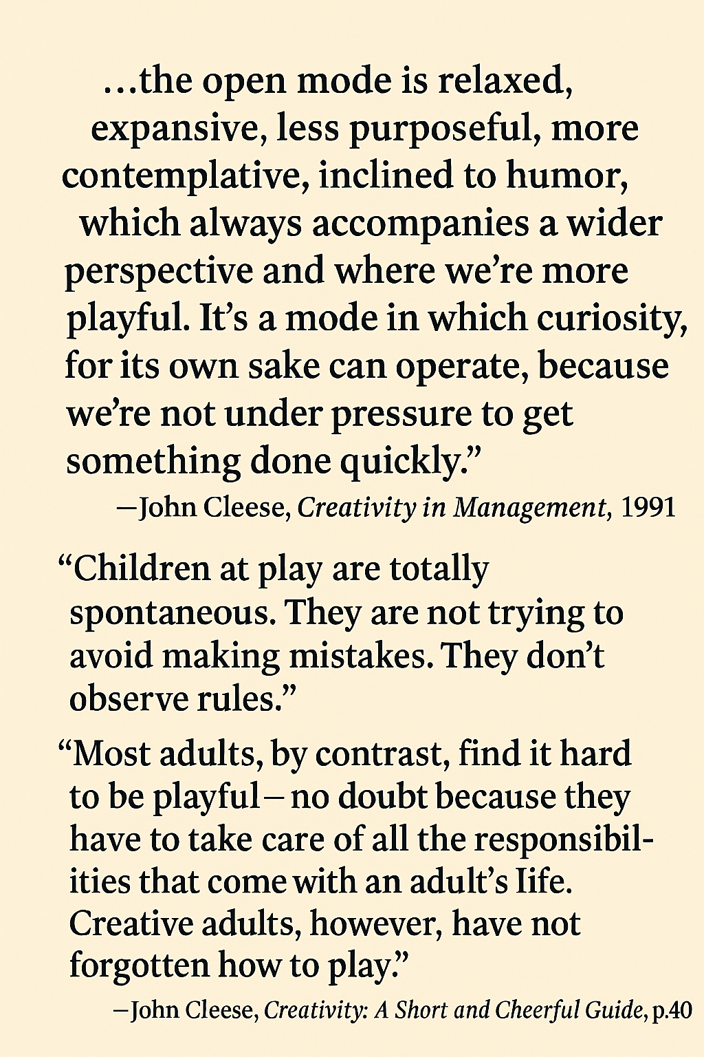 [9] Cleese, John. Creativity: A Short and Cheerful Guide. Crown, 2020, p. 40.